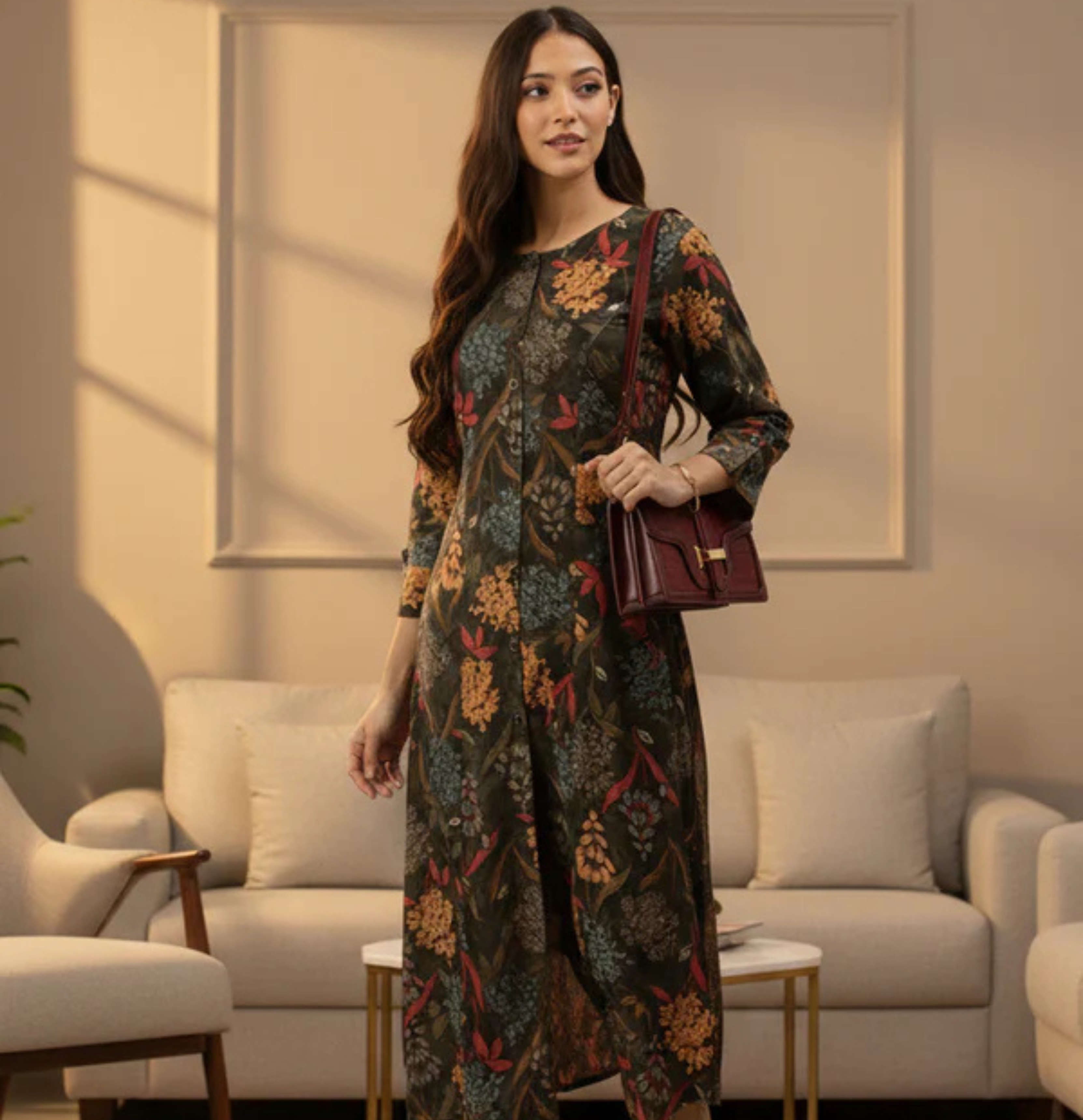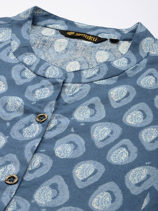 Black Zig-Zag Printed Mandarin Collar Tunic