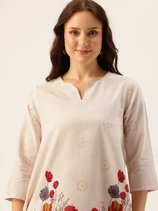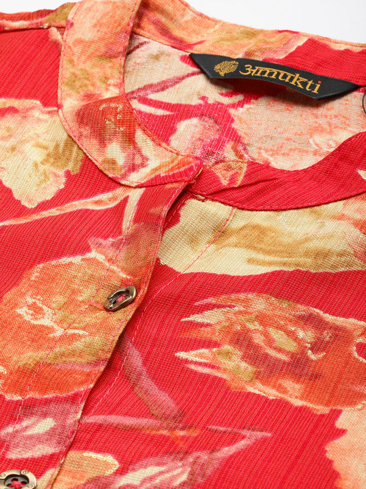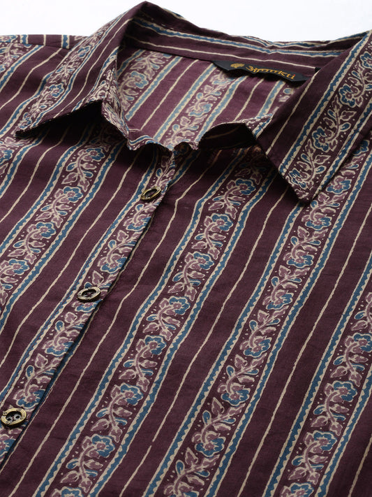 Maroon Pure Cotton Striped Printed Straight Kurta