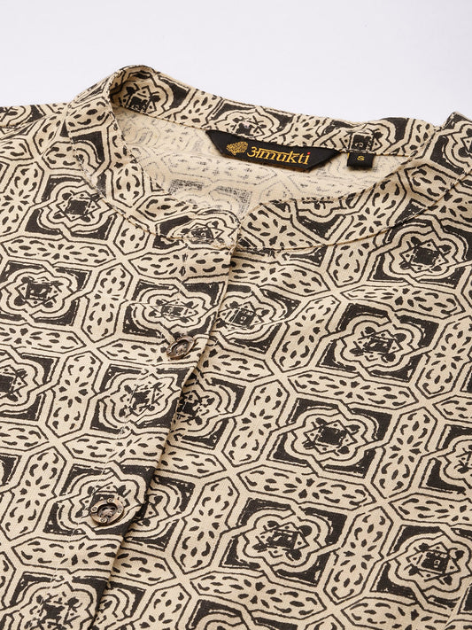 Beige Printed A Line Kurta