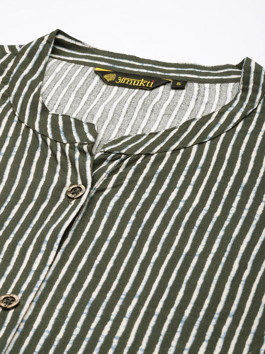Olive Green Floral Printed Empire Style Kurta
