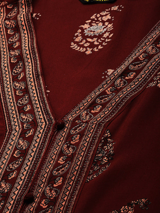 Maroon Ethnic Motifs Printed V-Neck Kurta