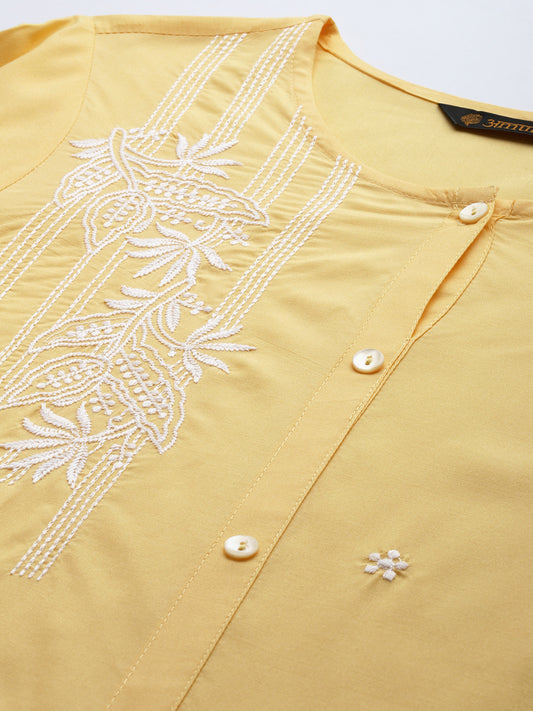 Yellow Floral Embroidered Tunic
