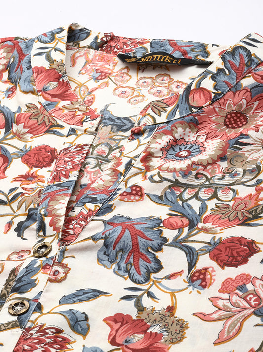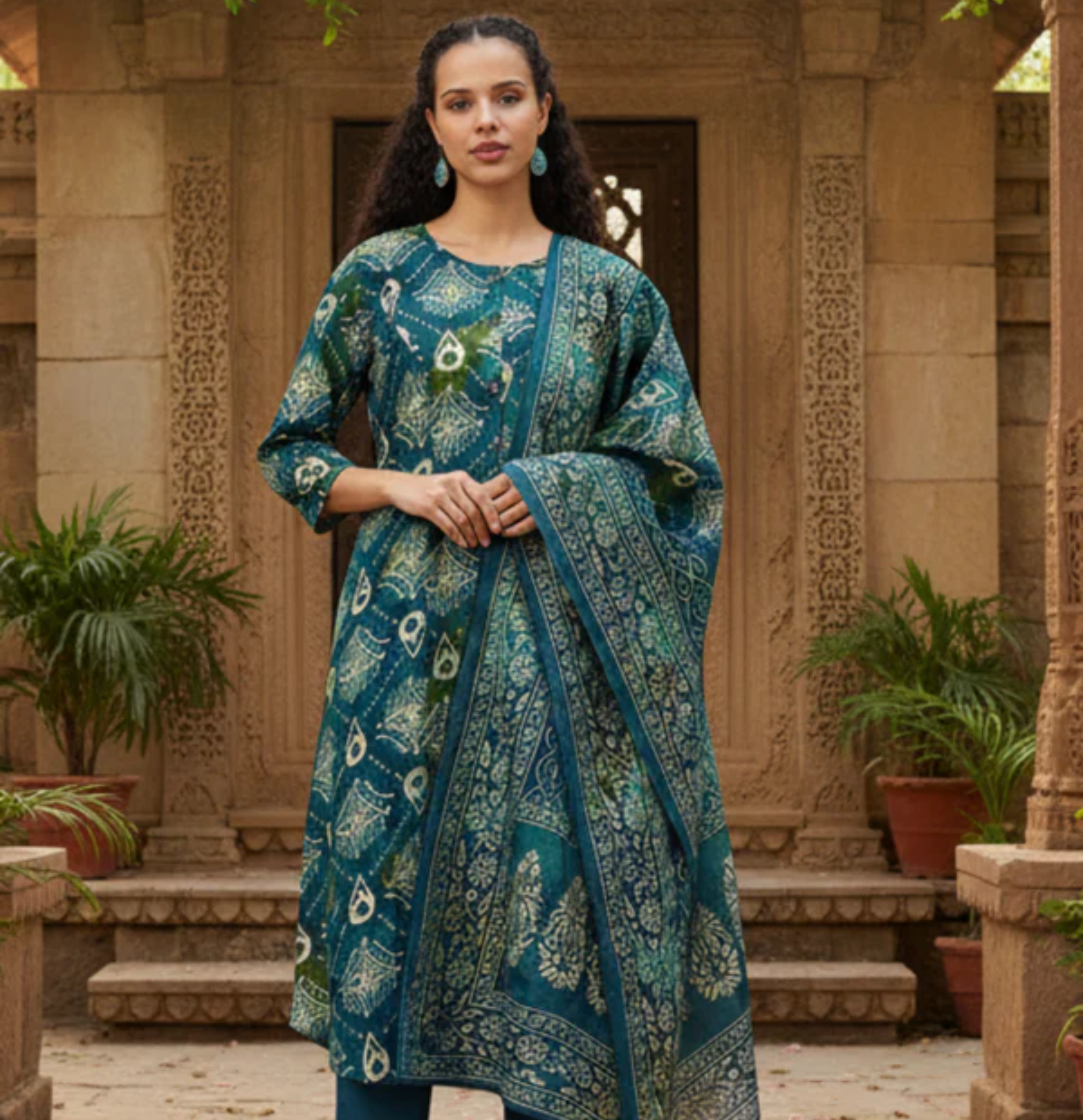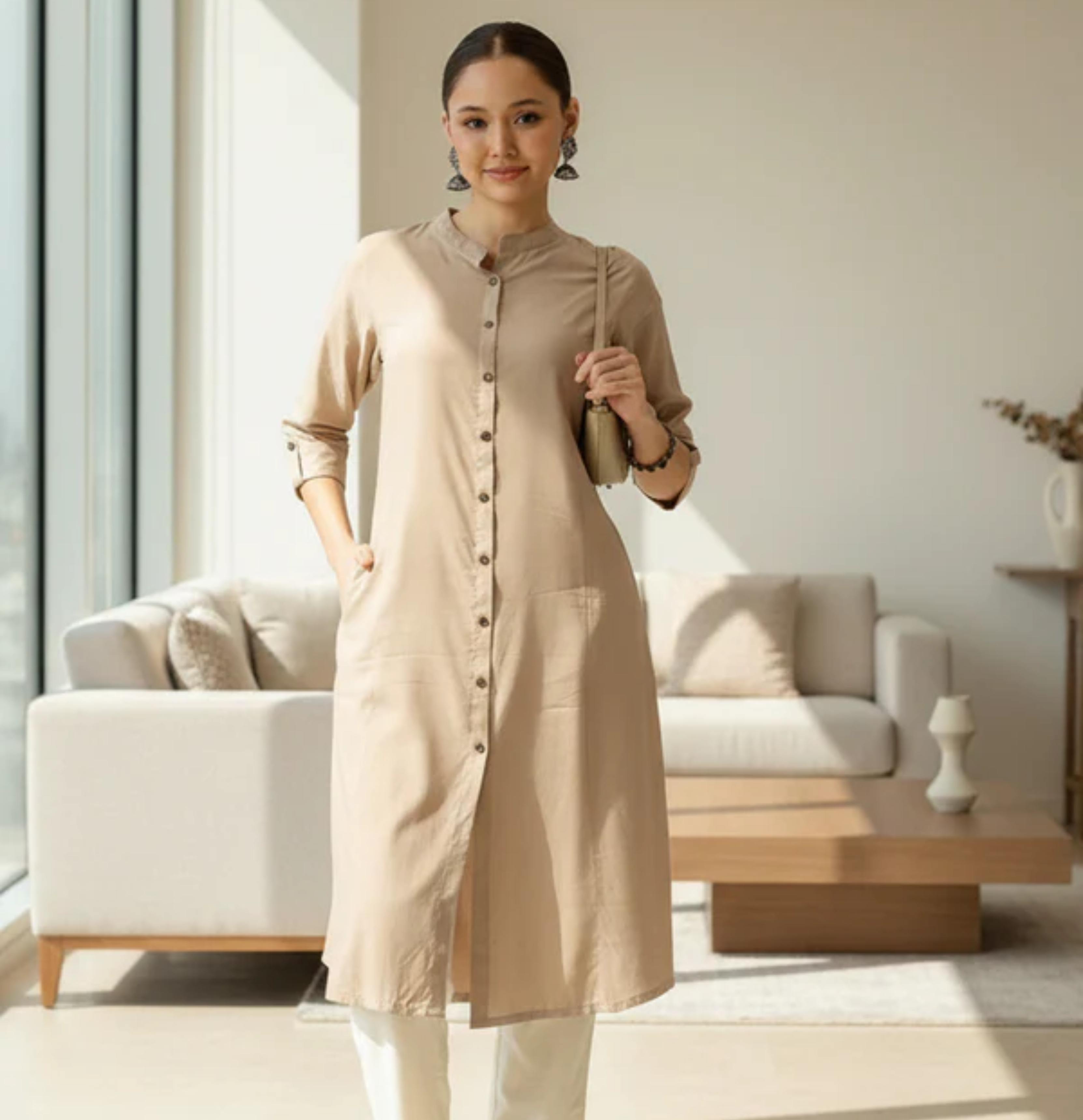 Cadet Blue Solid Mandarin Collar Straight Kurta