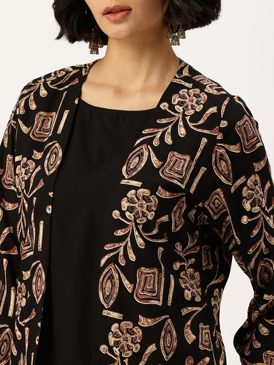 Black Floral Printed Ethnic Dress With Shrug