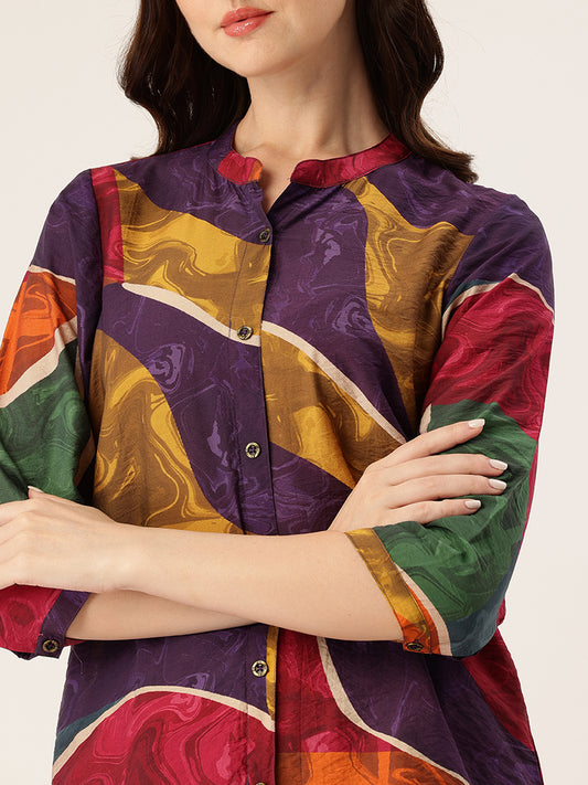 Yellow V-Neck Striped Printed Kurta & Trousers...