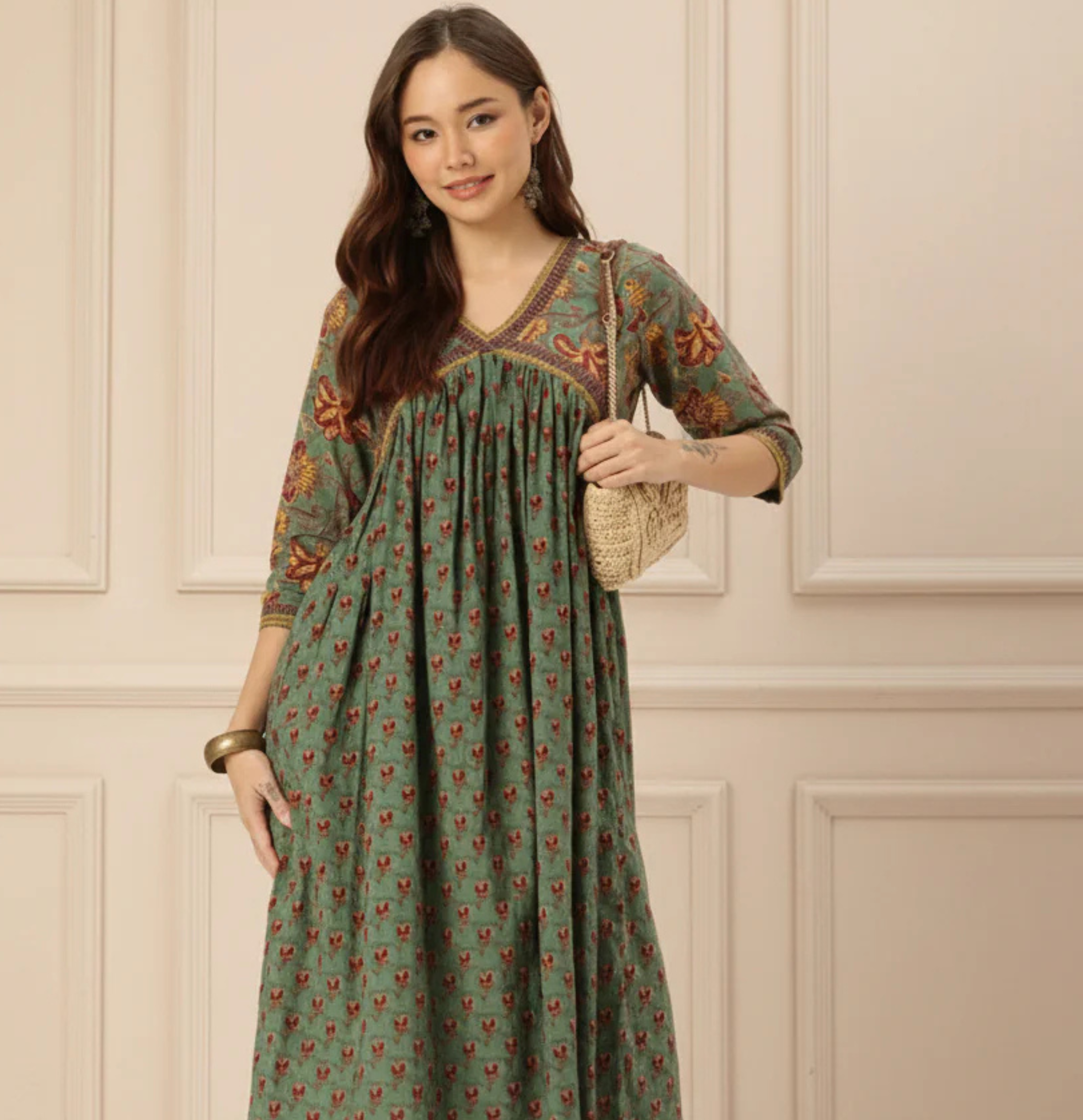 Almond Embroidered Ethnic Tunic