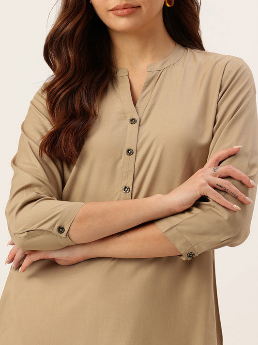 Almond Solid Mandarin Collar Straight Kurta