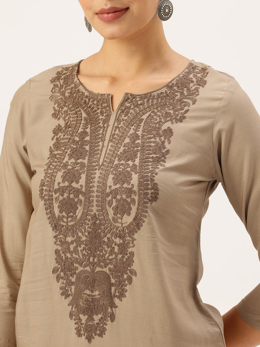 Beige Chikankari Inspired Embroidery Kurta