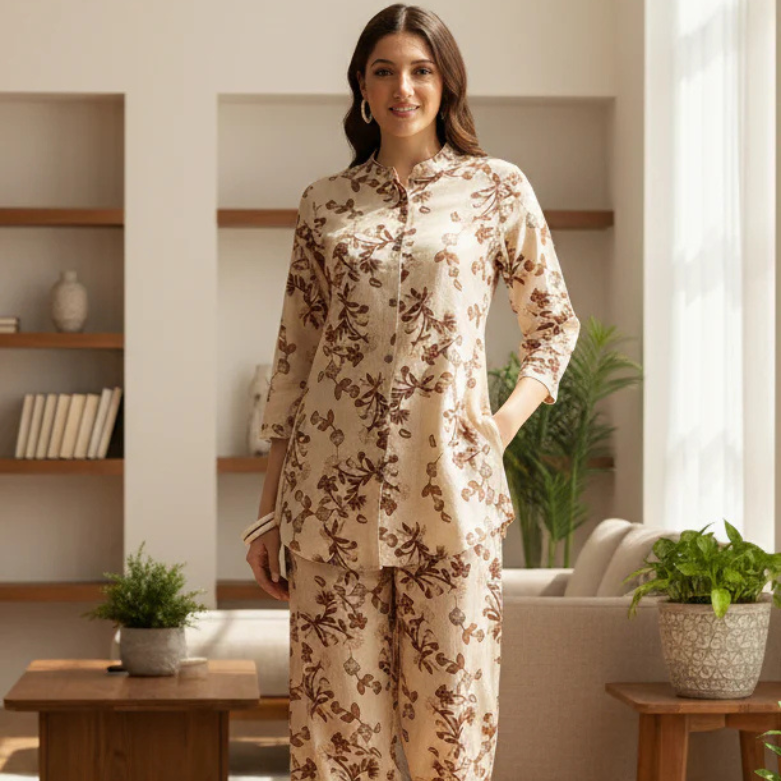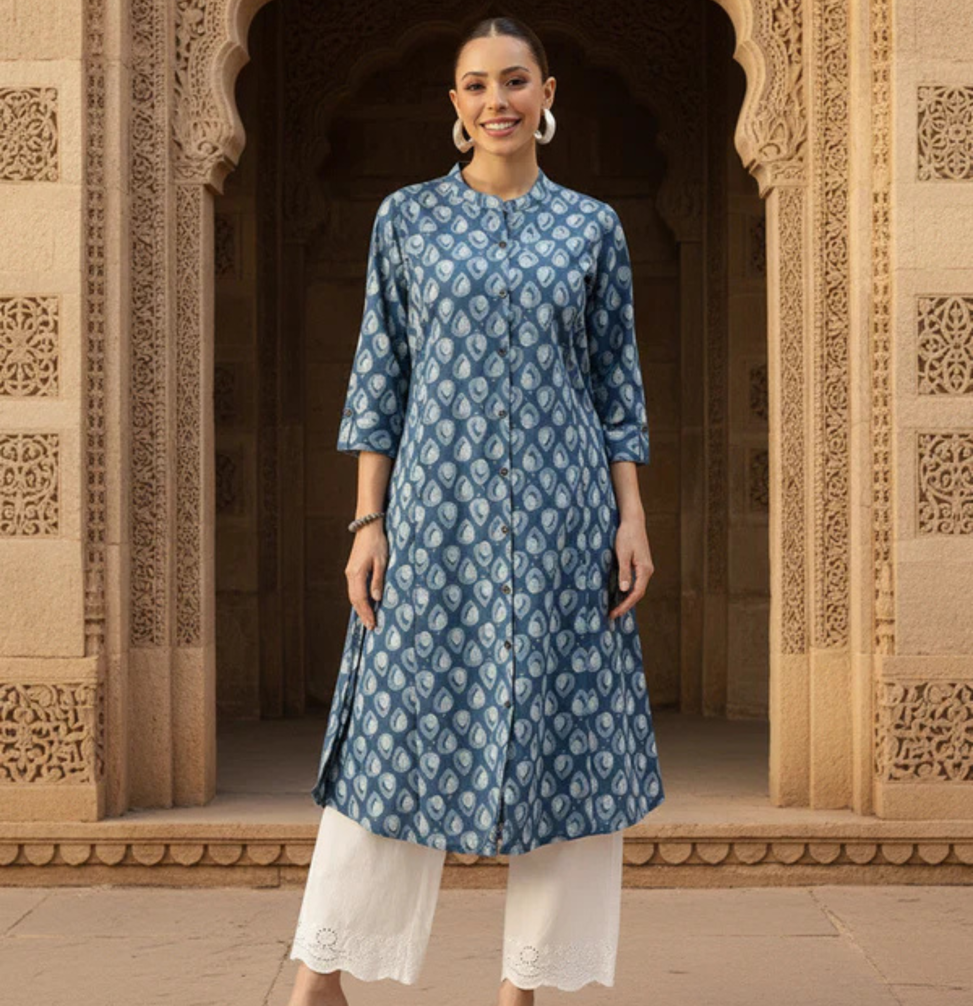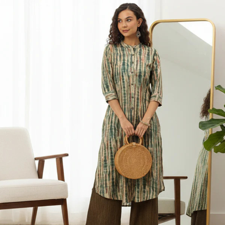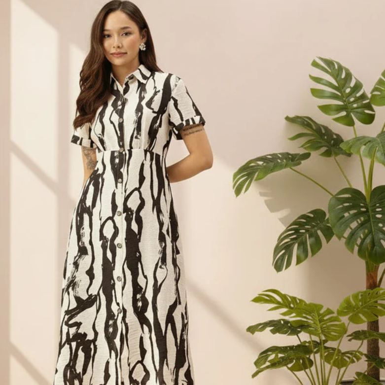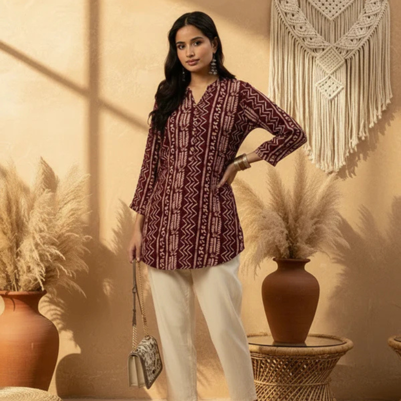 Black Zig-Zag Printed Mandarin Collar Tunic