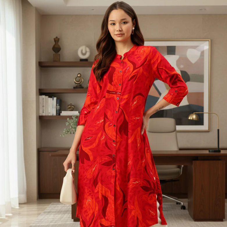 Lotus Red Essential A-line Kurta