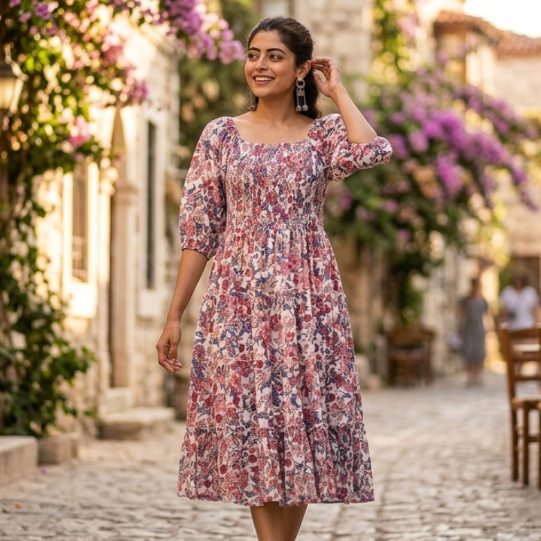Yellow V-Neck Striped Printed Kurta & Trousers...