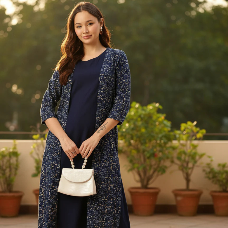 Navy Blue Floral Printed Kurta