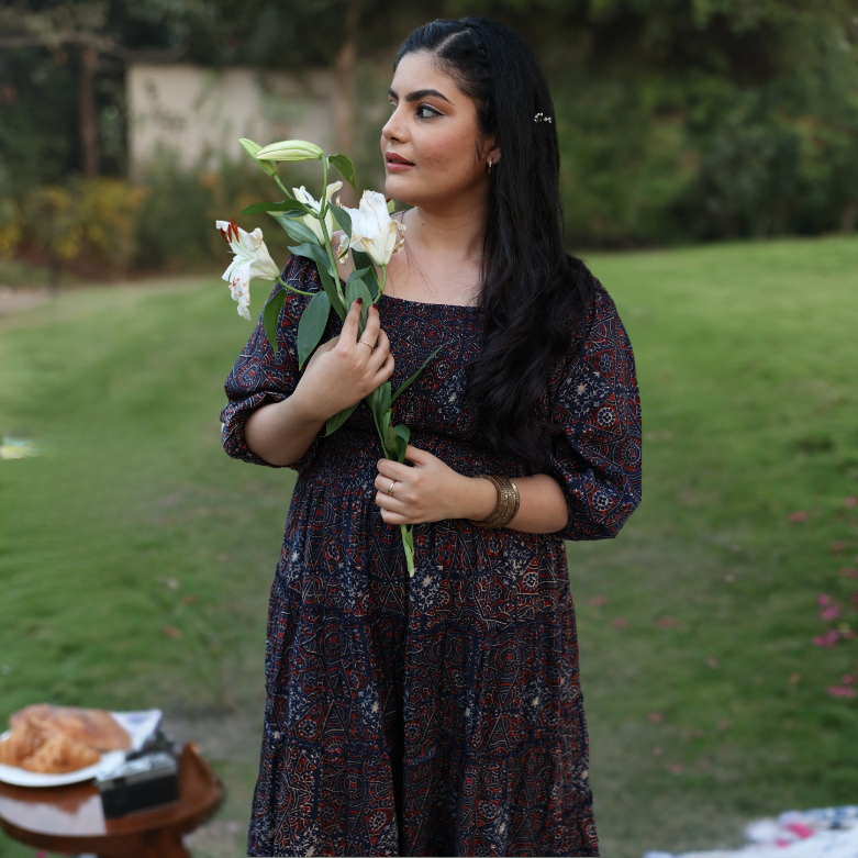 Blue Floral Printed Kurta