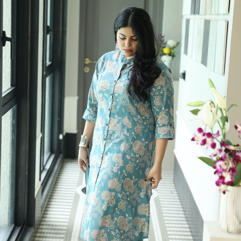 Blue & White Printed A Line Kurta