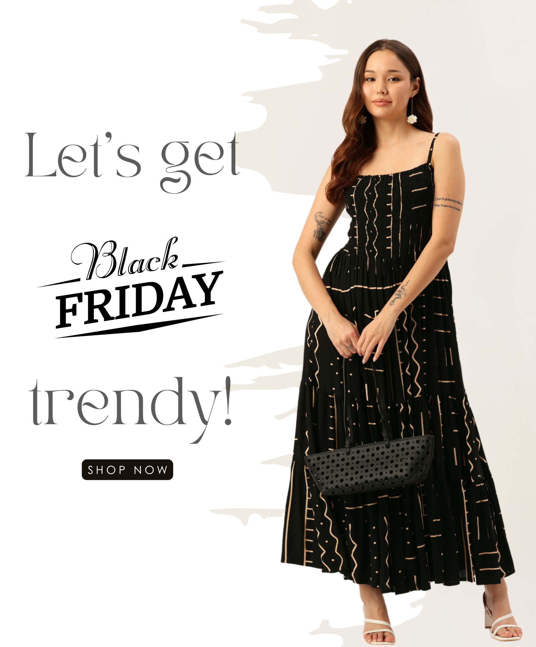 Black Geometric Printed A-Line Kurta