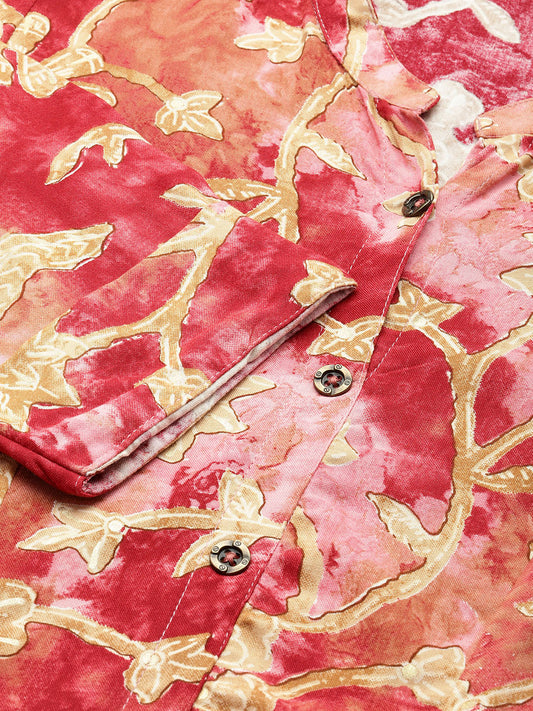 Abstract Printed Roll-Up Sleeves Tunic with Palazzos