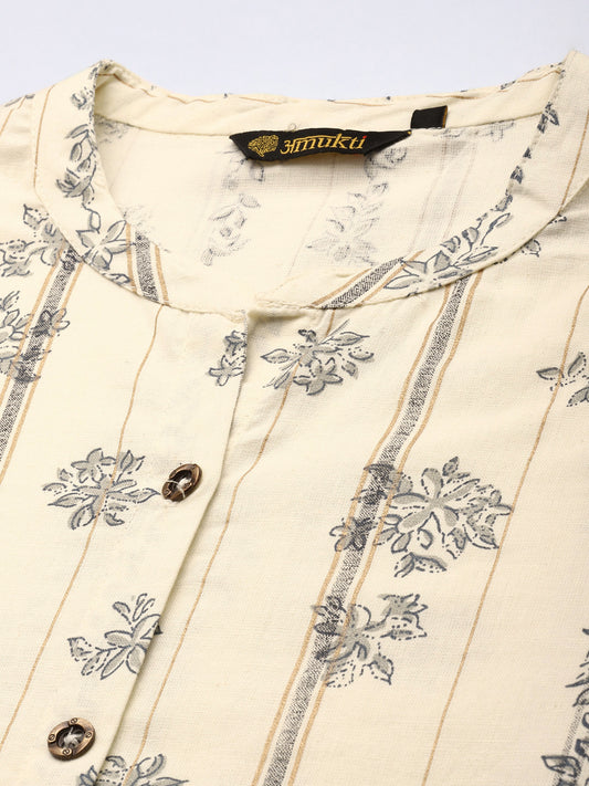 White Stripe Printed A Line Kurta