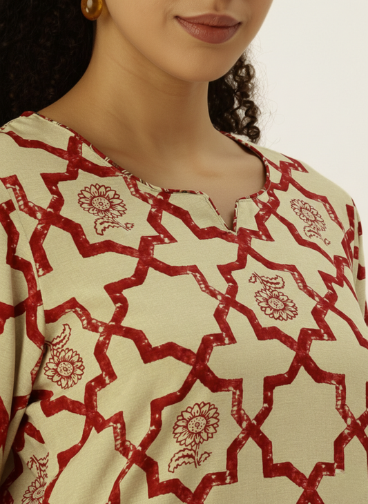 Red Geometric Printed A Line Kurta