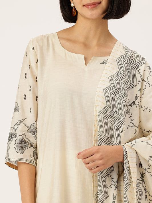 Beige Chikankari Inspired Embroidery Kurta