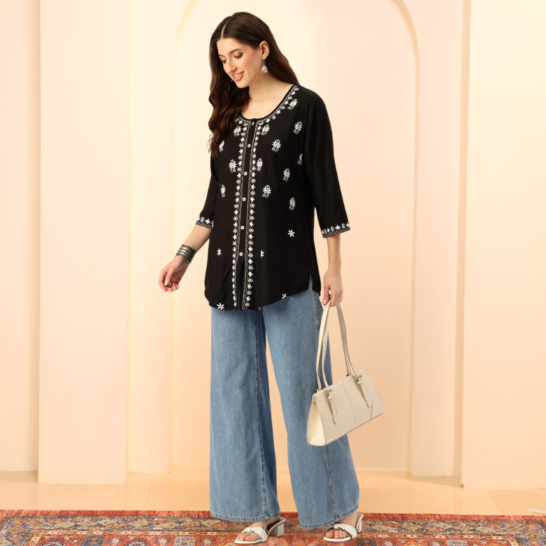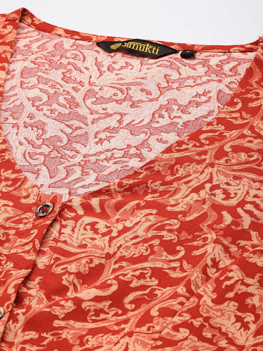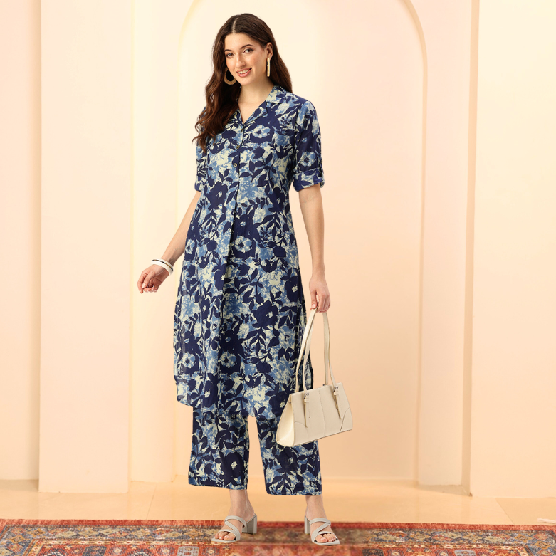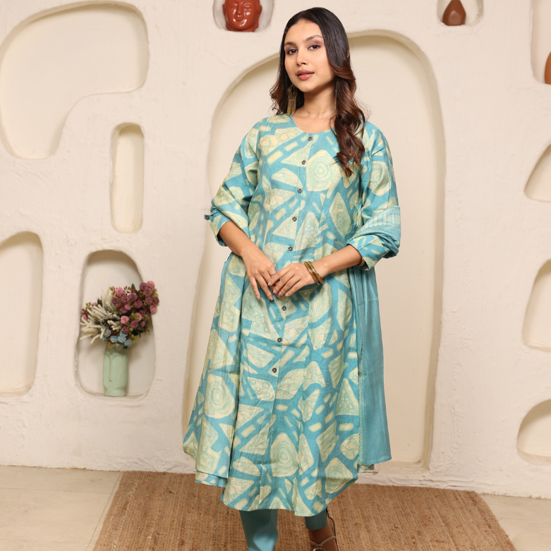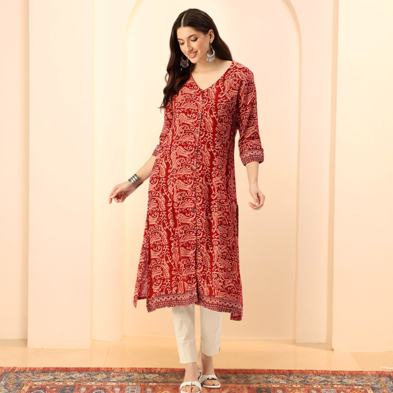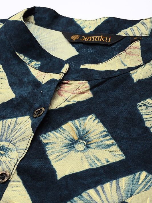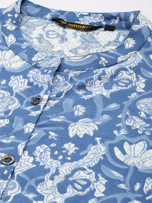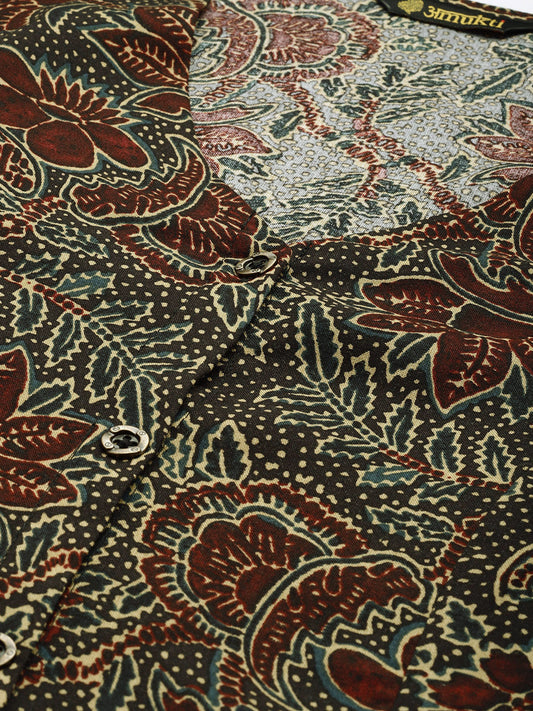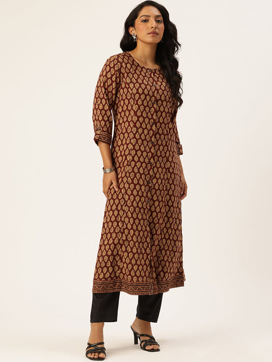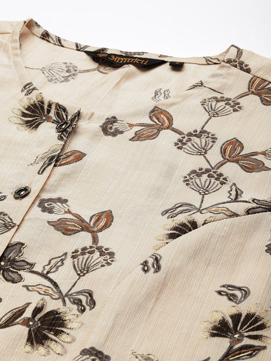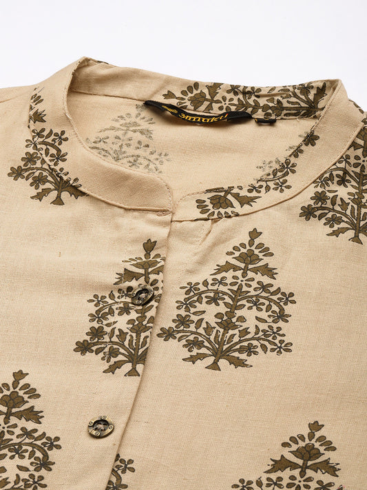 Grey Ethnic Motifs Printed Mandarin Collar Kurta