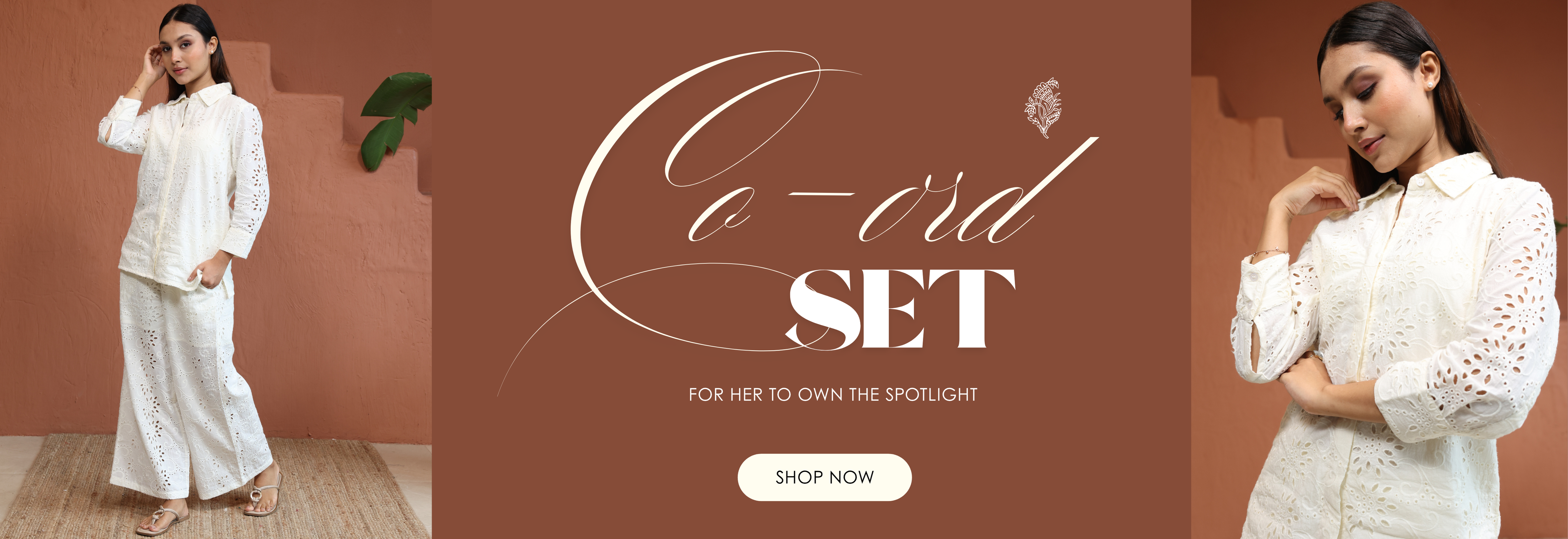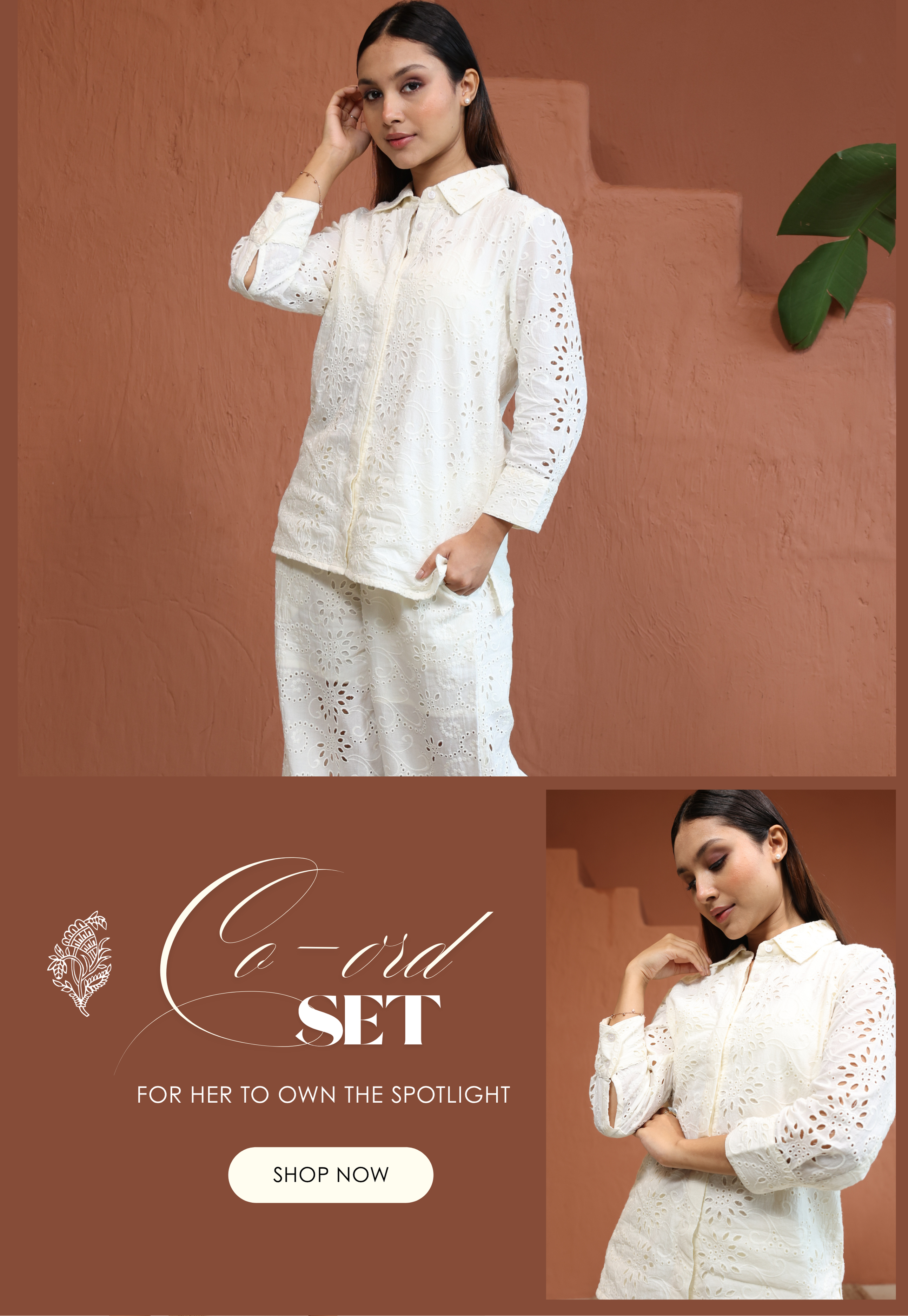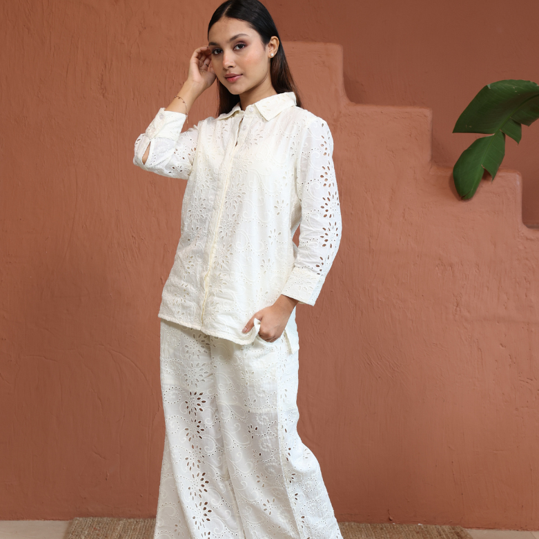 White Top With Trouser Schiffli Co-Ords