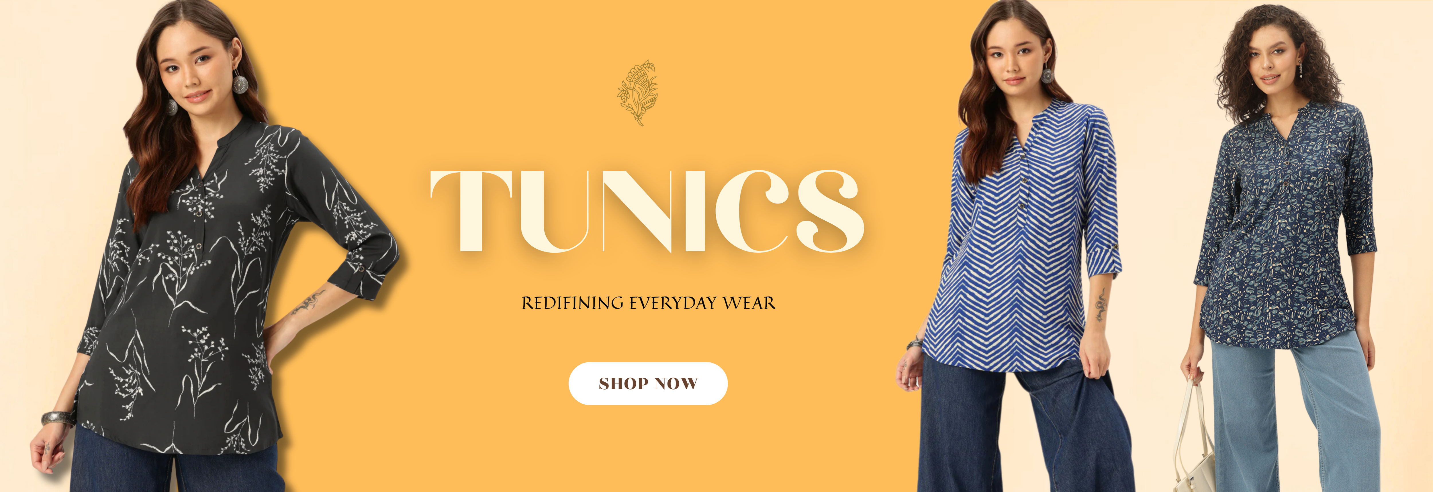 Yellow Floral Embroidered Tunic