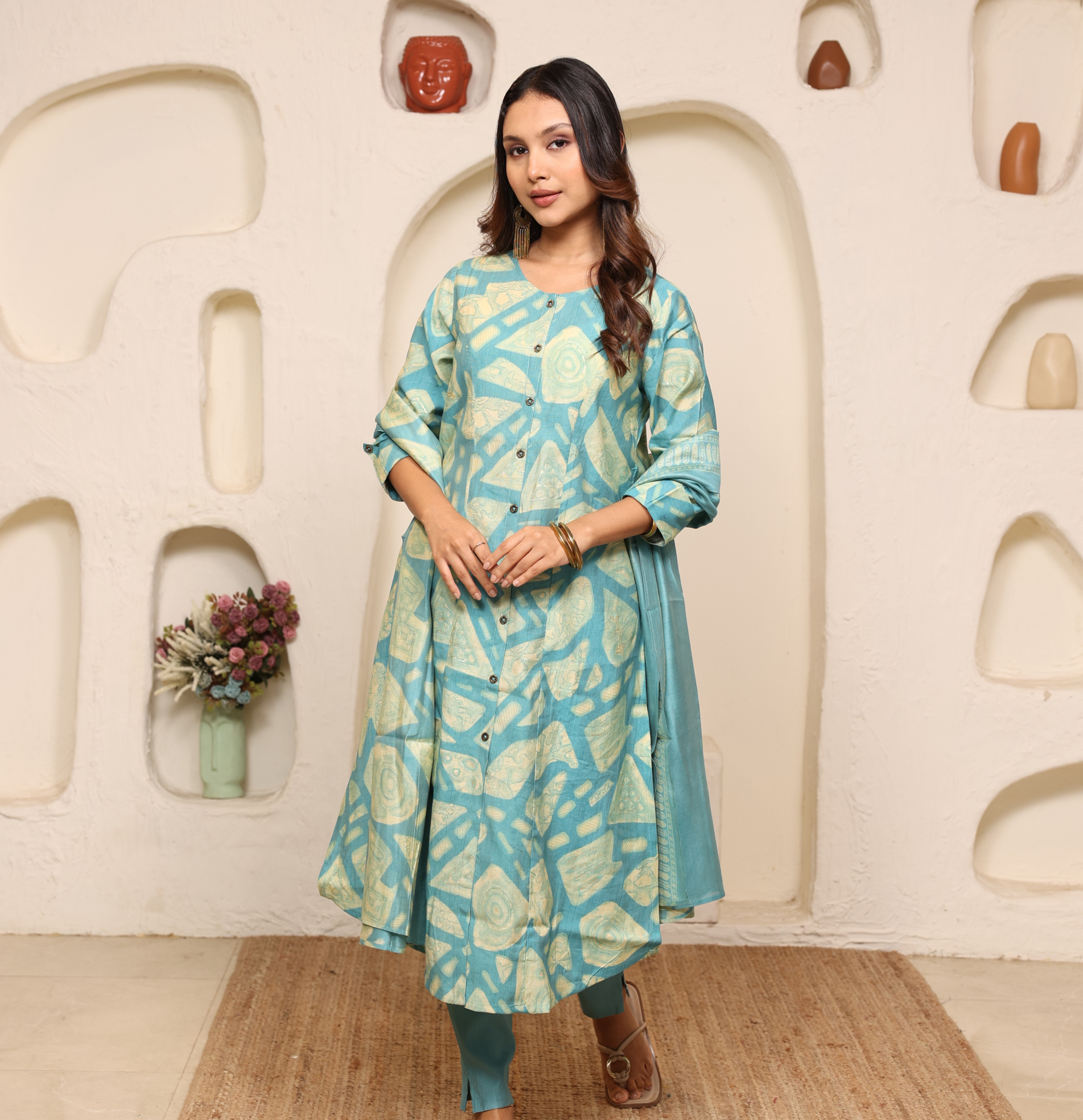 Green Ethnic Motifs Printed Kurta with Trousers...