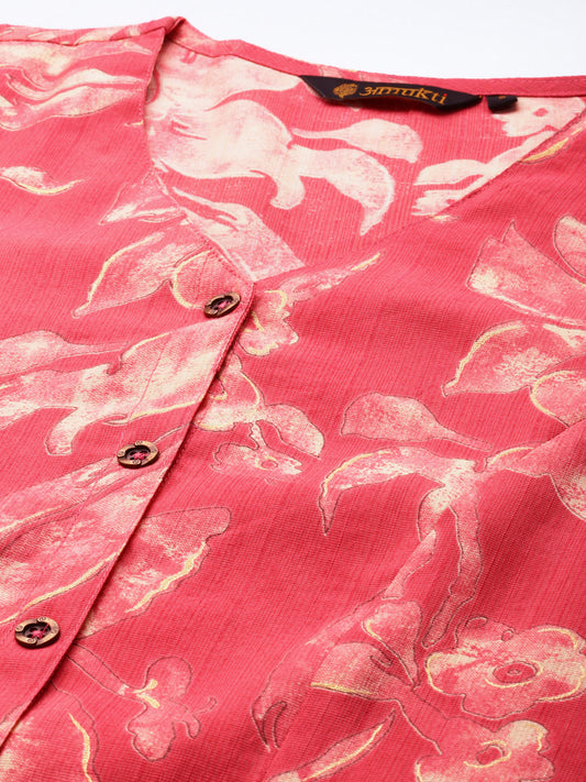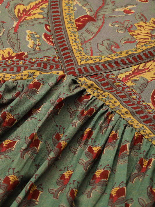 Maroon Pure Cotton Floral Printed A-Line Kurta