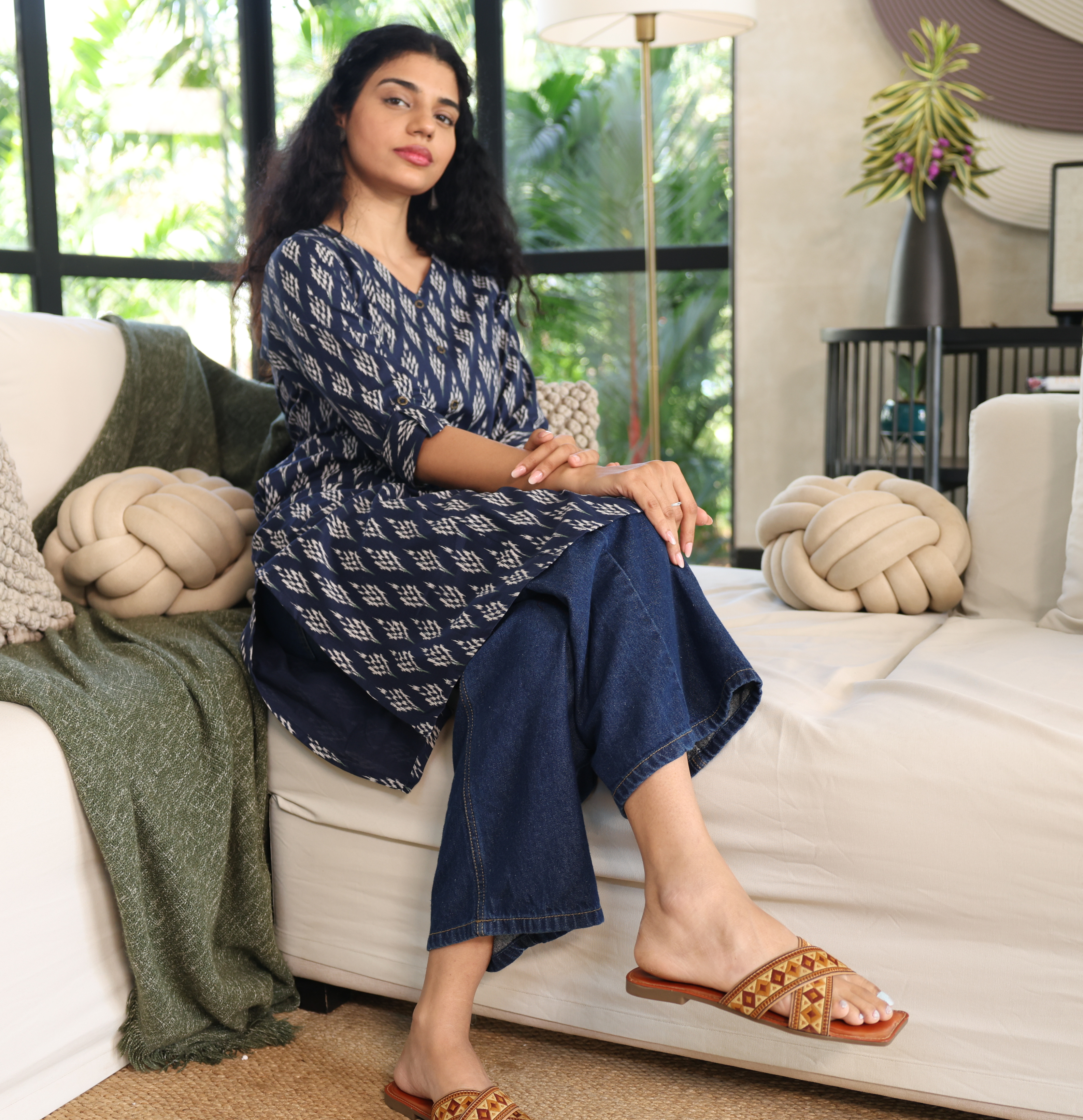 Grey Ethnic Motifs Printed Mandarin Collar Kurta
