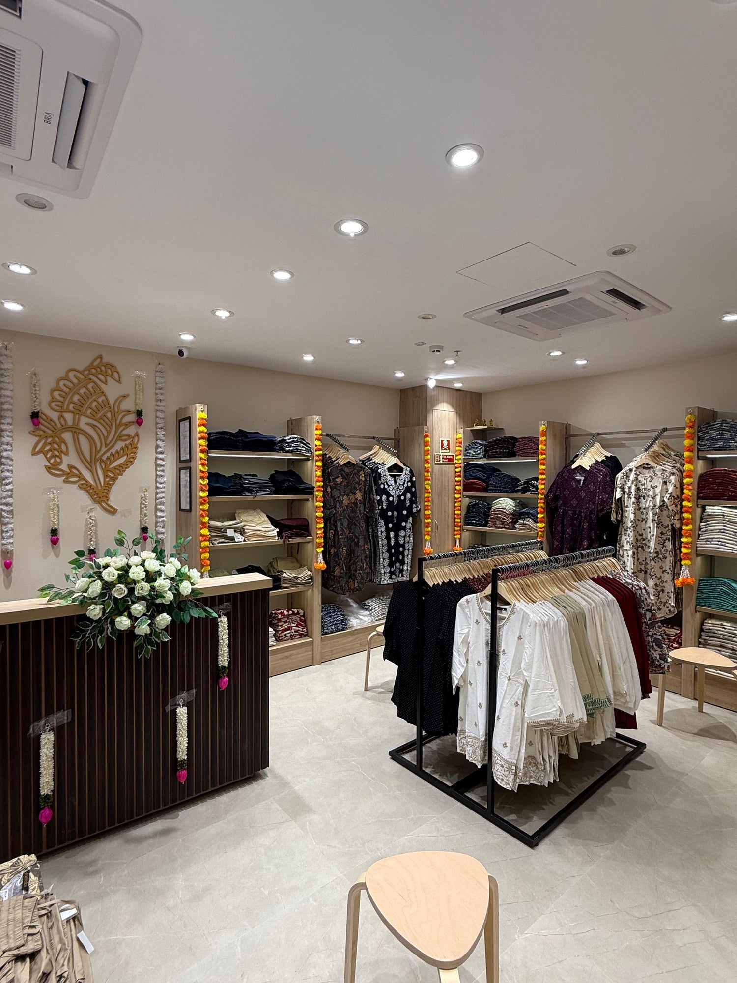 Black Floral Printed Mandarin Collar Pure Cotton...