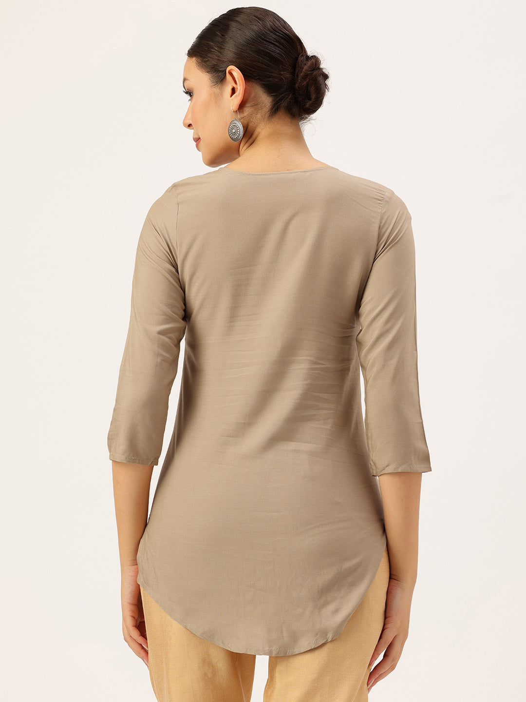 This short Embroidered kurta is made from Rayon fabric, treated with our signature wash to give a luxurious hand feel. Made from light fabric suitable for the Indian summer, this breathable short kurta is the perfect outfit for any occasion. Elevate your look with the luxurious Almond color short Kurta of our Rayon fabric