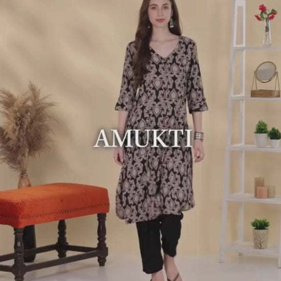 This modern A-Line kurta for women offers a clean and sophisticated look. Designed with expert craftsmanship, it provides a versatile and flattering fit, effortlessly accentuating your figure. Pair with our matching Pencil Pants, stylish earrings, Structured Shoulder Bag, comfortable Juttis to complete the look.