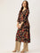 Black V - Neck Floral Printed A - Line Kurta