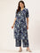 Blue Floral Printed Pure Cotton Kurta With Trousers