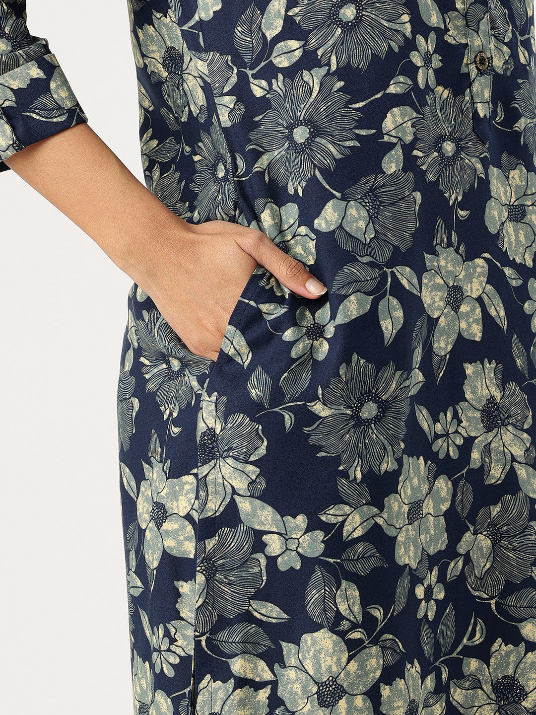 Blue Floral Printed Straight Kurta