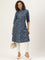 Blue Indigo Printed Mandarin Collar A-Line Kurta
